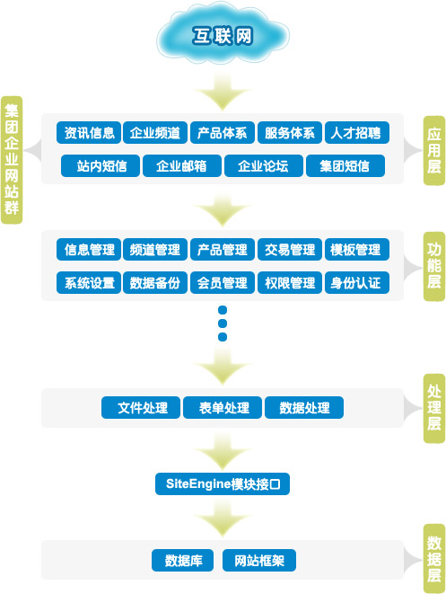 迅速實(shí)施集團(tuán)企業(yè)網(wǎng)站建設(shè)及子公司網(wǎng)站群的構(gòu)建,并能實(shí)現(xiàn)簡(jiǎn)易維護(hù)和按需擴(kuò)展。在面向全球的互聯(lián)網(wǎng)環(huán)境下,把公司各類優(yōu)勢(shì)資源整合到集團(tuán)企業(yè)門戶之下,根據(jù)集團(tuán)企業(yè)行業(yè)特點(diǎn),形成個(gè)性化的應(yīng)用,并通過對(duì)信息和反饋的處理機(jī)制,促進(jìn)集團(tuán)企業(yè)內(nèi)部形成有機(jī)統(tǒng)一。